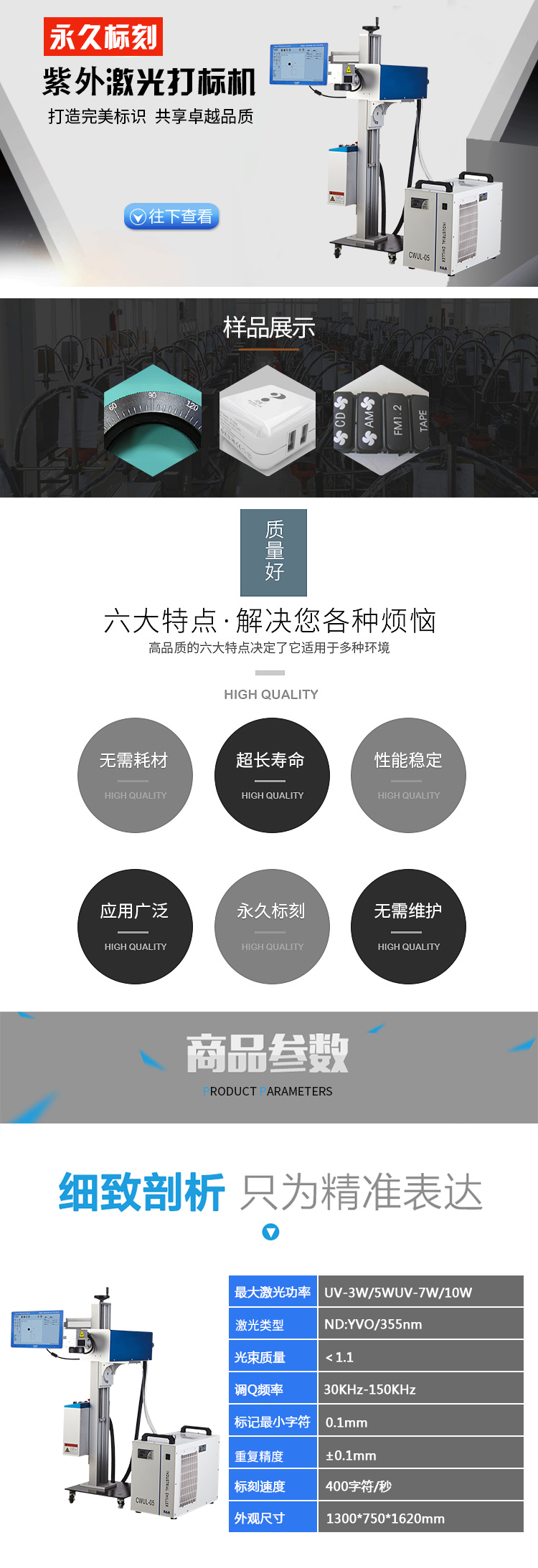 ① 光束质量好,更适用于精密、精细打标